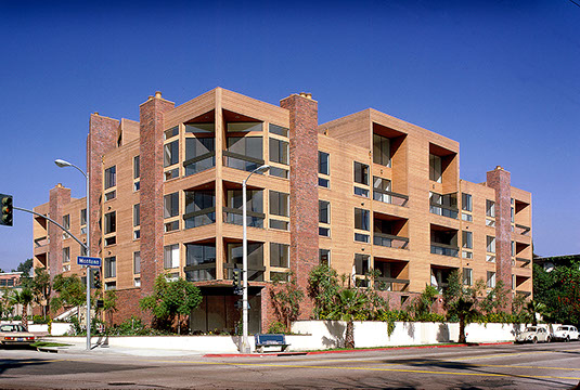 This thirty-six unit residential condominium project incorporates our hallmark diagonal floor plan unit layout. By creating triangular shaped units we are able to provide maximum exterior window area and views to every unit in the building, while maintaining a minimum vertical access interior core and common hallways. The residential units are located on three floors with two-story loft units on the third floor. Two and a half levels of subterranean structure provide for a full size swimming pool, gymnasium, spa, and parking for all of the units and their guests. The pool area was provided with a large window at grade facing south that provides natural daylight while protecting swimmers from inclement weather.