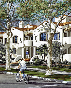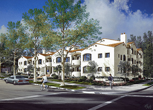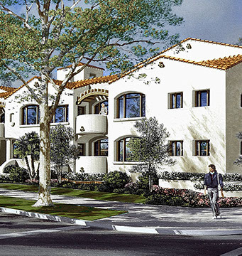 This project was a triple threat in having to meet the demands of governing agencies, the homeowners in the immediate area and of course the client. The area is a special part of the City that is dedicated to equestrian estates. Interspersed within the estates along the boulevards are very small scale multi-family residential rental properties. The client had put together a number of separate properties with the intent of combining them for greater efficiency of scale and mitigation of yards between the adjacent parcels. The proposed project was for 26 luxury condominium residential units in an area of much smaller scale developments. Needless to say this raised the concern of all interested parties.