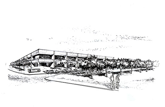 Understanding that market conditions are always evolving we introduced the concept of "convertible industrial buildings" to our client. What we did was design the industrial buildings to accommodate a two-story office building conversion. The tilt-up concrete exterior walls were provided with knock out panels which could easily be cut out and replaced with a commercial glazing system. A second floor could be built inside with a hydraulic elevator and voila, in just a short time an industrial building has been transformed into a two-story office building. The design challenge is to make a well designed industrial building morph into a well designed office building. It actually worked surprisingly well. Roughly speaking this equates to increasing the rent potential by 2.5 times and the gross square footage by 2 times resulting in a redefined building grossing 5 times the revenue. Just imagine the overall gain in project value
